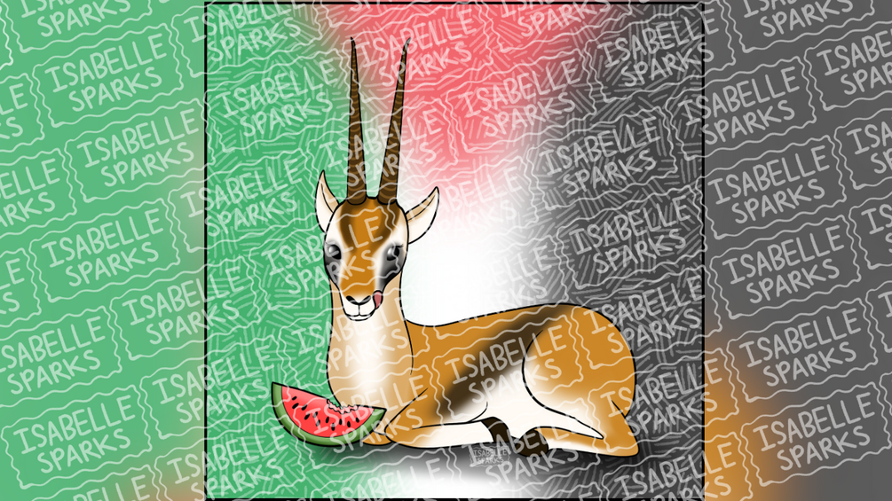 Palestine Mountain Gazelle Eating Watermelon (Digital Print)